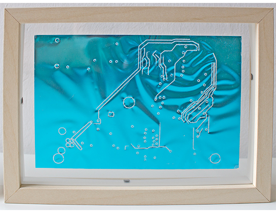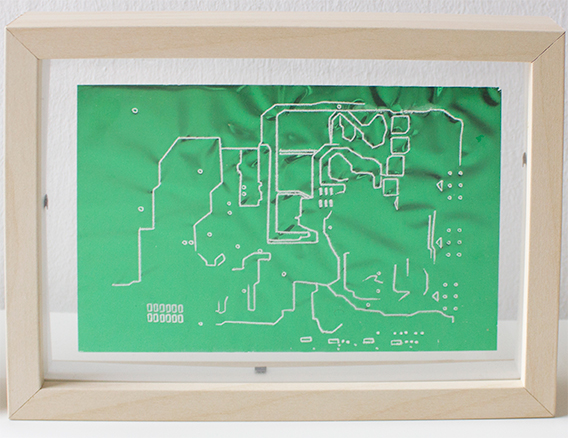 Nodos es una serie de cinco grabados sobre foil, cuyos dibujos han sido vectorizados en formato SVG, previamente en Adobe Illustrator, basados en placas de circuito impreso, para después ser grabados mediante plotter de corte y dibujo con adaptación de punta para grabado sobre el propio foil.